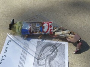 Today my students made sculptures out of trash. In an assignment that I borrowed from Maine book artist Rebecca Goodale, they chose an endangered species from Alabama and created a sculpture made from garbage they found on campus. What drew me to Goodale’s project was the idea of building likenesses of these creatures out of the very materials that were destroying them. (In many cases, the 117 endangered plant and animal species in Alabama number only in the hundreds.) In a way, they became effigies, a reminder of how the little things we throw away add up. A reminder of how our actions–no matter how insignificant we may find them–have consequences.
