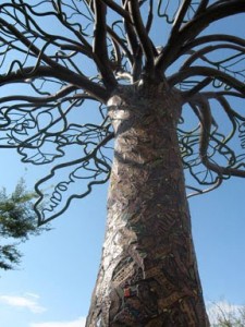 So is it any wonder that one of the most interesting features of the town is a sculpture called the Tree of Knowledge? Installed at the public library in 2008, it was designed by artist Sue Wink, who set up workshops that allowed the public to create clay tiles that would become the bark of the tree. The tree stands 17 feet tall and is made of over 2,800 of these custom tiles. Inside the metal limbs are words that relate to the library’s function in inspiring creativity.