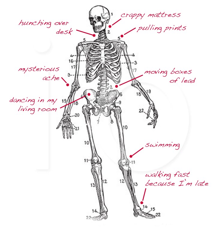 It’s possible this happened when I carried a TV down a flight of stairs. Or when I moved a bunch of type cases filled with lead. Possibly doing Pilates, but probably from the crappy mattress I’ve been sleeping on. But that’s not really the point here.