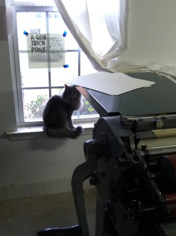 Here’s Oliver helping me plan the next print run. He’s a pretty good supervisor.