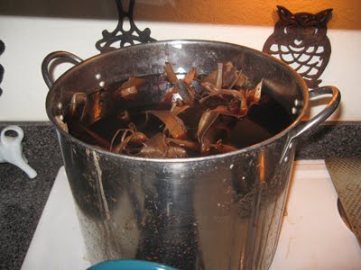 I cooked the fiber on my kitchen stove in the biggest pot I could find. It was only after I dumped in the cup full of soda ash that I considered the possibility of passing out because of the chemical reaction and the lack of ventilation. (I should also say that earlier that evening, due to an unfortunate chain of events brought about by my friend whose car had run out of gas, said pot had a small bit of gasoline spilled in it. I had the good sense to scrub it out before I put it on the stove, but part of me still feared that I might be formally introduced to the nearest fire department when my apartment was a wreck and there was an ominous, bubbling pot of stinking fiber boiling over on the stove.)